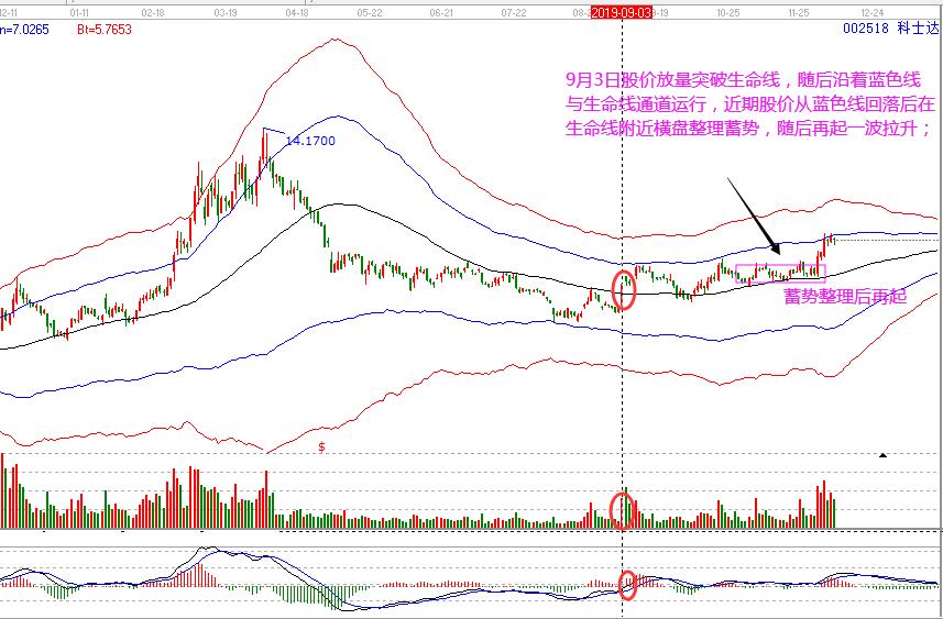 科士達(dá):9月3日股價(jià)放量突破生命線,趨勢(shì)由弱轉(zhuǎn)強(qiáng),隨后沿著藍(lán)色線與生命線通道運(yùn)行,近期股價(jià)從藍(lán)色線回落后在生命線附近橫盤(pán)整理蓄勢(shì),隨后再起一波強(qiáng)力拉升。