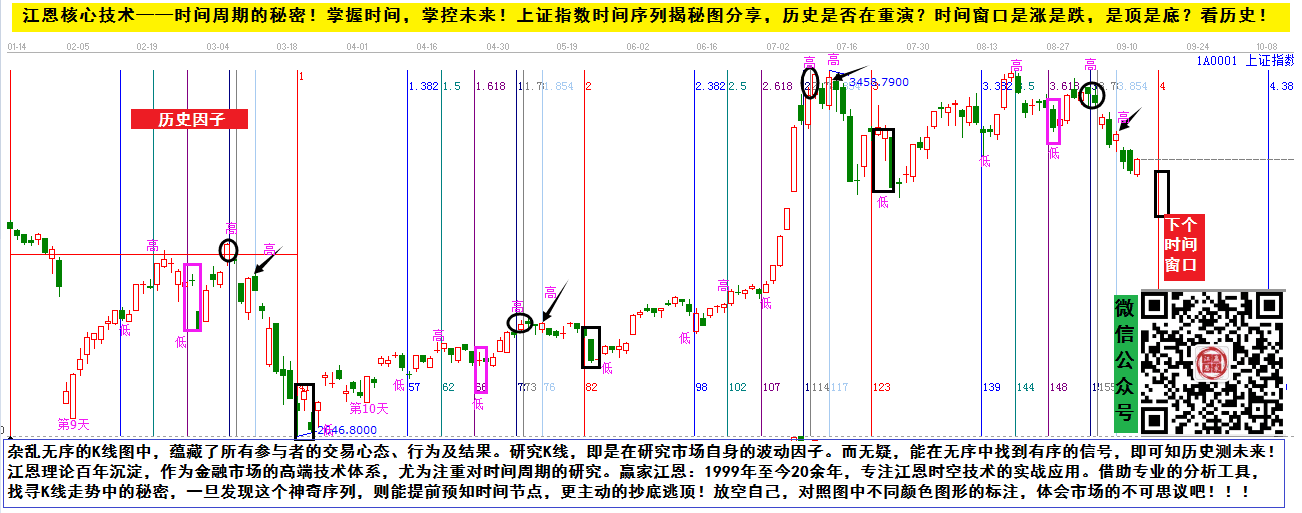 江恩核心技術(shù)——時間周期的秘密!掌握時間,掌控未來!上證指數(shù)時間序列揭秘圖分享,歷史是否在重演?時間窗口是漲是跌,是頂是底?看歷史!