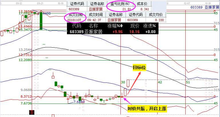 7號,贏家江恩依據(jù)上述兩種模型選出并操作亞振家居,3個交易日,獲利21%。當(dāng)下亞振家居向上突破藍(lán)色下軌線位置,站穩(wěn)一線看高一線,過了藍(lán)色下軌線位置,下一個目標(biāo)位就是生命線,后期繼續(xù)關(guān)注。