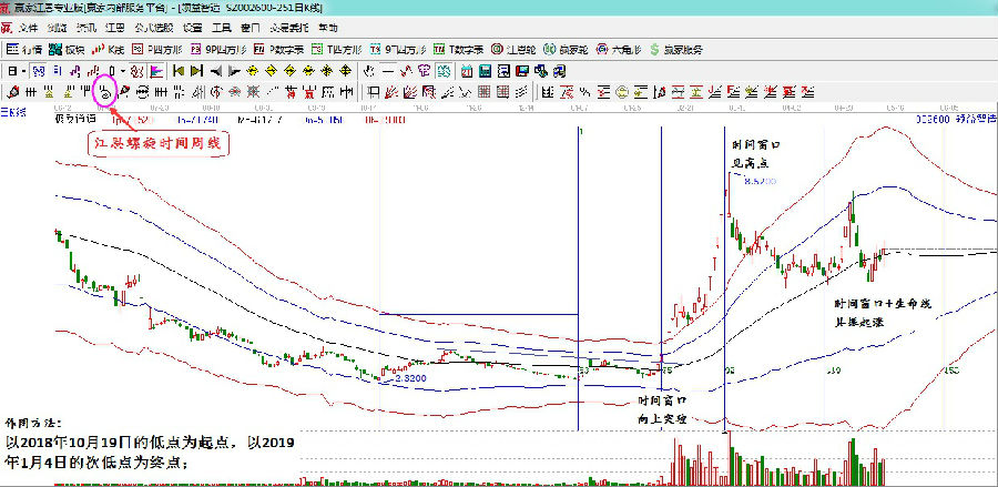 本周帶大家學(xué)習(xí)一個(gè)預(yù)判時(shí)間窗口的工具-江恩螺旋時(shí)間周期線。時(shí)間分析是有江恩首次引入到金融市場(chǎng)中,開(kāi)啟了金融市場(chǎng)技術(shù)分析的新方向,江恩理論認(rèn)為,時(shí)間是決定市場(chǎng)走勢(shì)的最重要因素,而經(jīng)過(guò)我們的長(zhǎng)期實(shí)戰(zhàn),發(fā)現(xiàn)當(dāng)時(shí)間和價(jià)格形成四方時(shí),市場(chǎng)會(huì)發(fā)生趨勢(shì)的反轉(zhuǎn),或出現(xiàn)大陰大陽(yáng)的劇烈波動(dòng),同時(shí)伴隨著成交量的放大。我們進(jìn)行時(shí)間分析,最重要的目的是判斷市場(chǎng)是處于上漲或下跌趨勢(shì)的什么階段,根據(jù)價(jià)格做好下一步走勢(shì)方向的預(yù)判。江恩螺旋時(shí)間周期線就是這樣的一個(gè)具備超強(qiáng)實(shí)戰(zhàn)意義的時(shí)間分析工具。接下來(lái),筆者以?xún)蓚€(gè)股票的具體走勢(shì)為例做個(gè)展示幫助大家了解該工具的具體應(yīng)用。