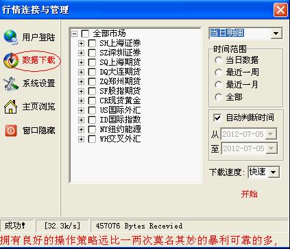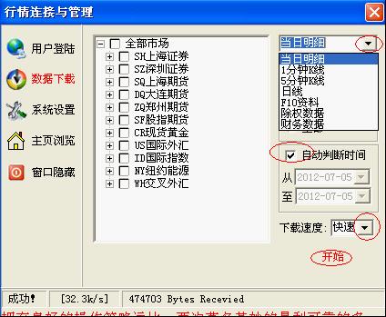 1)單擊你要下載的行情品種前面的四方框,會(huì)有對(duì)勾出現(xiàn);