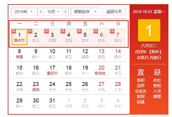 根據(jù)國(guó)家假期安排并結(jié)合贏家財(cái)富網(wǎng)實(shí)際情況,現(xiàn)定于2018年10月1日(星期一)至2018年10月7日(星期日)為國(guó)慶放假日期,放假期間網(wǎng)站暫停客服咨詢等相關(guān)服務(wù),網(wǎng)站仍可正常使用,2018年10月8日(星期一)在線咨詢等服務(wù)恢復(fù)正常。假期期間客戶如需咨詢相關(guān)業(yè)務(wù),可撥打值班電話:13333833889,進(jìn)行咨詢!具體的放假時(shí)間休息如下圖。