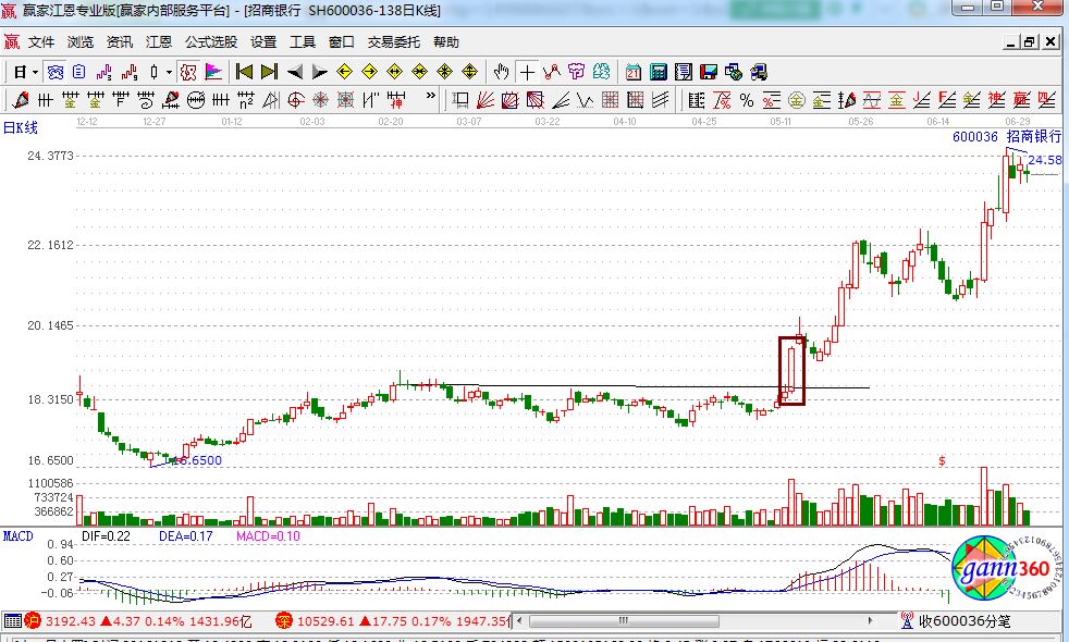 上面是招商銀行從1月份到現(xiàn)在的走勢圖,可以 說該股在幾年上半年,漲幅達(dá)到了36.6%。那這里大家就可以思考兩個問題。