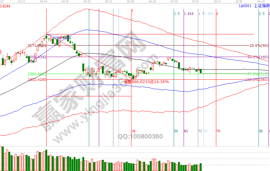 滬指昨天最低點與分析的支撐2878僅一點之差,但日線處于生命線下弱勢,深指與創(chuàng)業(yè)板明日將確認(rèn)日線生命線支撐,幾大指數(shù)如都失守生命線則表示2822點的反彈結(jié)束,同時也印證了我們近十個交易日的策略,波段百分比延伸線2878、零度位2966點區(qū)間內(nèi)運行持股等待,突破任何一個點位則將確認(rèn)日線趨勢。20號贏家江恩系統(tǒng)培訓(xùn)課中談到,失守2878點向下則看周線生命線(贏家學(xué)員參考極反通道查看具體位置)及缺口位置,突破2966點則再一次確認(rèn)3048高點。預(yù)判目的是做應(yīng)對計劃,是敬畏市場的一種體現(xiàn),漲跌市場有自身運行規(guī)律,投資者做好持倉跟隨,是對交易、本金的負(fù)責(zé)。23、24號時間窗口后,下個一日線級別時間是8月1號。7月23號盤中壓力是135度2911點、180度2928點,盤中支撐是0度2860點、315度2844點【參考性強】。操作策略,指數(shù)極反通道生命線下弱勢震蕩,整體持倉保持3成以內(nèi),降低操作頻次。
