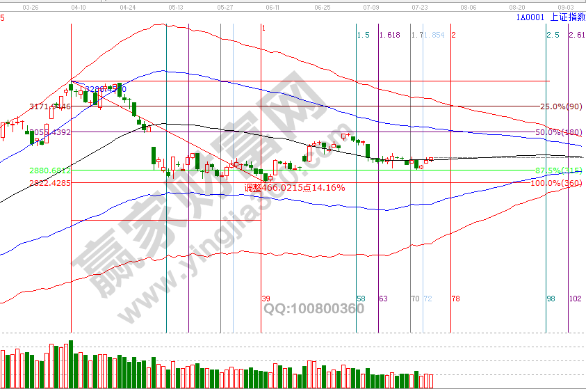 24號先行指數(shù)上證50收復(fù)短周期60分鐘關(guān)鍵位,贏家江恩技術(shù)服務(wù)老師在學(xué)員區(qū)及時解讀了此信號,收復(fù)此線則代表新一波震蕩反彈動作的展開,周四滬指日線及短周期全部進(jìn)入生命線上安全區(qū)域,需要注意的是短周期15分鐘即將觸碰極反通道藍(lán)色上軌線,預(yù)示著26號早盤沖高后會出現(xiàn)滯漲情況,從各周期線關(guān)系看反彈動作還將延續(xù),修整是對突破日線生命線一次確認(rèn)動作,此處反彈空間與時間維持不變,下個時間窗口是8月1號,7月26號盤中壓力是225度2944點(diǎn)、270度2961點(diǎn),盤中支撐是135度2911點(diǎn)。操作策略,指數(shù)極反通道生命線震蕩,信號延續(xù)價格看60分鐘上軌線,時間看8月1號,信號結(jié)束為上證50失守60分鐘生命線,整體持倉保持3成。