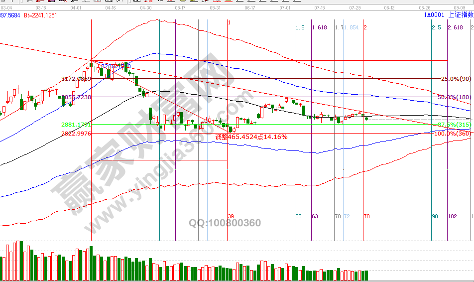 2966是近期一直強調(diào)的反彈重要阻力位,30號上攻到2965.6(精準無誤差)后如期受阻回落,再次彰顯江恩對價格點位的精準計算。按照規(guī)則壓力位下逢高兌現(xiàn)不開新倉,等待8月1日時間窗口。1號時間窗,指數(shù)失收生命線,趨勢再度轉(zhuǎn)弱。8月2號盤中壓力是135度2911點、180度2928點,盤中支撐是90度2894點、45度2877點。操作策略,指數(shù)失守日線生命線,失守60分鐘生命線,穩(wěn)健者繼續(xù)休息,等待新的交易信號出現(xiàn)。整體倉位控制在3成內(nèi)。