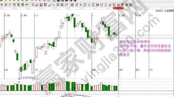 ★依據(jù)贏家江恩理論系統(tǒng)極反通道提示:指數(shù)日K線在黑色生命線2928點上運行,按規(guī)則生命線上看多做多。