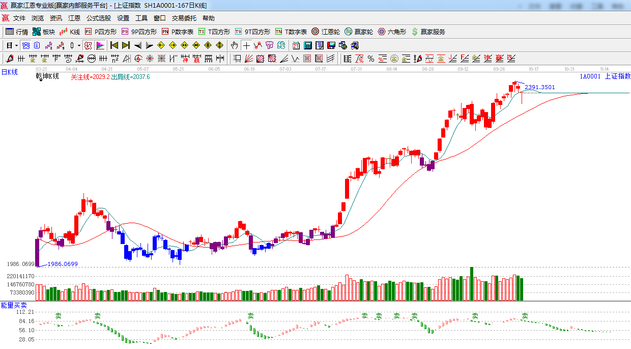 ☆依據(jù)贏家江恩系統(tǒng)黃金時(shí)間周期線提示:10月9日以及寒露時(shí)間節(jié)點(diǎn)之后,指數(shù)重心下移,短期可能將要調(diào)整幾天了,下一時(shí)間窗口10月22日。