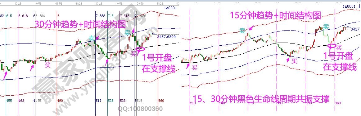 1號(hào)滬指再度逼近7月3458高點(diǎn),突破高點(diǎn)勢(shì)在必得。30號(hào)上攻日線江恩箱8*1線與極反通道藍(lán)色上軌線共振壓力回落,對(duì)1號(hào)市場(chǎng)分析預(yù)判中談到,60分鐘生命線上運(yùn)行市場(chǎng)還將延續(xù)反攻,此結(jié)論是從短周期時(shí)間結(jié)構(gòu)中推導(dǎo)得出??臻g上學(xué)員可以打開工具,通過極反通道查看30、15分鐘K線圖,周期共振信號(hào)直觀、清晰可見,在贏家江恩體系中此信號(hào)是解決如何確立買賣點(diǎn),市場(chǎng)流傳一句會(huì)買的是徒弟,會(huì)賣的是師傅,而該信號(hào)不僅解決了買點(diǎn),更解決了賣點(diǎn),同時(shí)成功率達(dá)85%以上,并且信號(hào)出現(xiàn)就是空間拐點(diǎn),是廣大投資者所期望的買在低點(diǎn)賣在高點(diǎn)模式。2號(hào)下午3:30將在學(xué)員群講解此模式實(shí)戰(zhàn)應(yīng)用技巧,聽課方式聯(lián)系贏家工作人員。