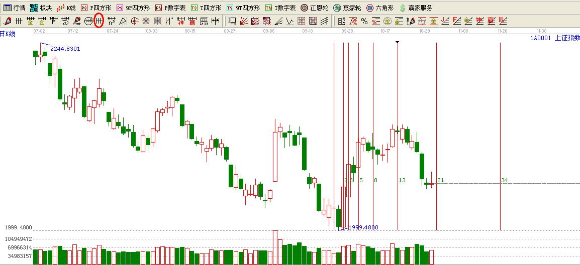 ☆依據(jù)贏家江恩系統(tǒng)工具——費(fèi)氏時間循環(huán)線。時間尺提示:大盤至9.26日反攻來上漲至13日開始橫盤下跌,明日就是重要的時間窗口了,如果不能突破極反通道生命線短期還是橫盤下跌為主。