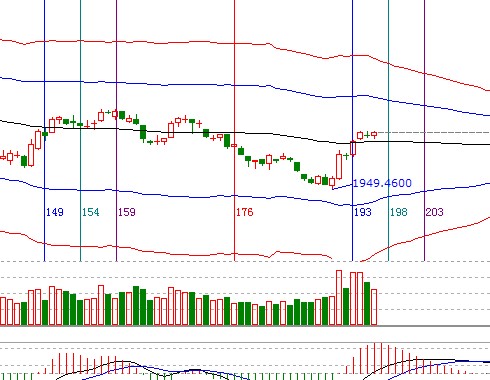 指數(shù)運行在生命線附近,日線進入周初通過時間工具提示的時間窗口,近兩個交易日震蕩確認生命線有效性為主,整理回落過程中不破生命線投資者可結合工具支撐做操作計劃,日線生命線支撐2060-2065,外軌線阻力2093-2106;