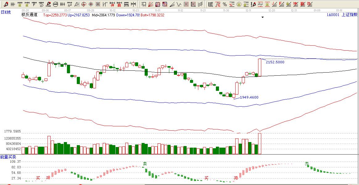 綜上所述:大盤上行極反通道生命線直接攻擊極反通道上軌,上軌壓力2167。紅色上軌位置2240附近。