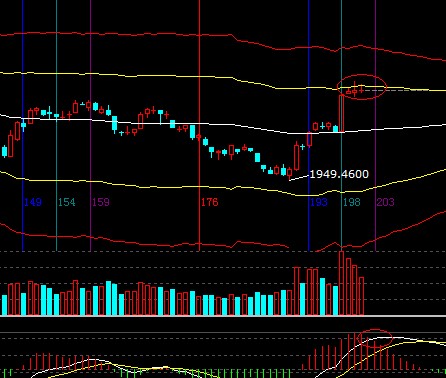大盤日線進(jìn)入本周時(shí)間窗口,三個(gè)交易日上攻極反通道強(qiáng)勢(shì)外軌線均無功而返收其線下,依據(jù)贏家江恩極反通道規(guī)則短線、波段此線上攻力度轉(zhuǎn)弱注意保護(hù)近期收益,短周期生命線支撐2135-2140,外軌線阻力2165-2174;