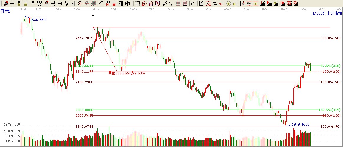 ☆依據(jù)贏家波段百分比伸線提示:大盤315度位置壓力2270破位,這里將構成重要的壓力位置,下方90度支撐2185附近,跌破一線看空一線,看空