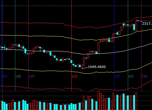 大盤在預(yù)期的60分鐘生命線多周期共振位置展開猛烈上漲態(tài)勢,“欲使之滅亡,必先使之瘋狂”詮釋了目前行情所處階段,短周期強勢外軌與日線紅色超強外軌區(qū)間為2320-2337,此空間保持謹(jǐn)慎做多,依據(jù)規(guī)則所持倉位應(yīng)不斷提升止損位保護(hù)收益,短期支撐2288-2295,外軌線阻力2320-2337;