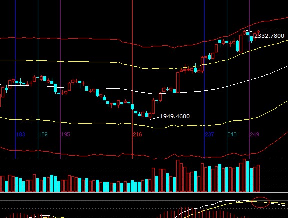 指數(shù)維持高位震蕩,各周期運(yùn)行在生命線(xiàn)以上強(qiáng)勢(shì)區(qū)域,MACD高位已出現(xiàn)死叉跡象,依據(jù)規(guī)則應(yīng)不斷提升止損位保護(hù)收益,或通過(guò)工具做差價(jià)降低成本,短期支撐2285-2295,阻力2326-2335;