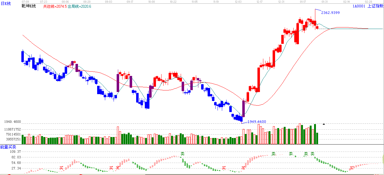 ★依據贏家乾坤K線提示:1月25日大盤跌破贏家乾坤K線出局線,謹慎看多。