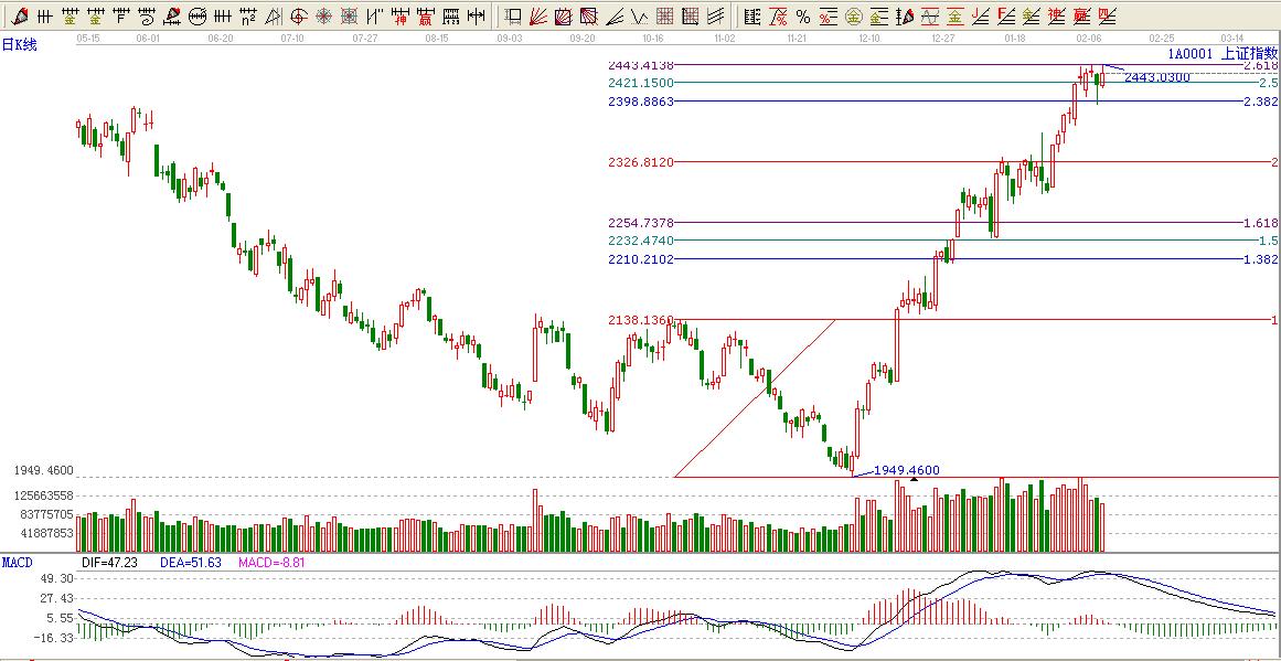 ★依據(jù)贏(yíng)家黃金價(jià)格延伸線(xiàn)提示:2.618位置2443點(diǎn)區(qū)間,黃金位置2.382不破看高一線(xiàn)至3倍位置2515點(diǎn)附近。