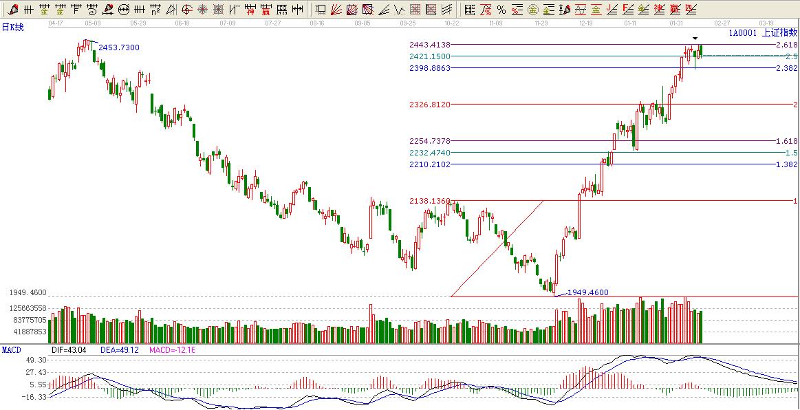 咨詢(xún):13333833889大盤(pán)如期圍繞黃金分割2.618-2.382位置震蕩,也再一次滲透了黃金分割在金融市場(chǎng)一個(gè)不可忽視的細(xì)節(jié)問(wèn)題。盤(pán)面大盤(pán)高開(kāi)后震蕩走低,個(gè)股較為活躍截止收盤(pán)大盤(pán)跌10.84點(diǎn)跌幅0.45%,漲停家數(shù)29家,跌幅5個(gè)點(diǎn)以上的15家。引人注目的就年前復(fù)盤(pán)的10家st股票4家漲停4家跌停,可謂是雷厲風(fēng)行。