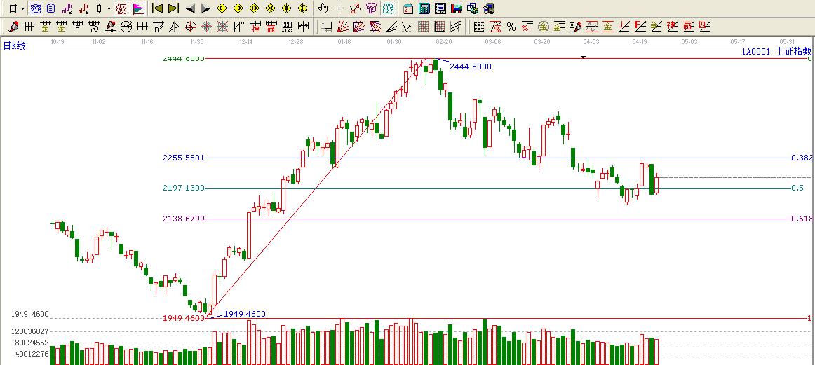 ★依據(jù)黃金價格回調(diào)支撐位提示:大盤再度收復0.5位置2197點,按照黃金分割用法,這里為主不破看高一線至0.382位置2255點。