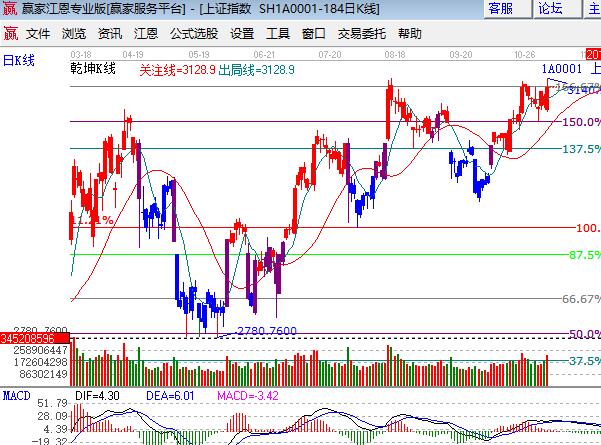 咨詢:13333833889大盤低開高走強勢反彈上漲0.84%,滬指盤中創(chuàng)出10個月新高,創(chuàng)業(yè)板最弱漲幅也達0.32%。大金融板塊券商和保險領(lǐng)漲權(quán)重,石油、有色漲幅墊后;題材方面中字頭為主的一帶一路,債轉(zhuǎn)股和PPP概念領(lǐng)漲,次新、股權(quán)轉(zhuǎn)讓、高送轉(zhuǎn)預(yù)期股早盤集體上攻,但尾盤再度集體跳水走出沖高回落局勢,黃金領(lǐng)跌。個股上漲居多成交量放大。技術(shù)方面,滬指各周期站在生命線上,短周期還有一定上升勢頭,妖股已進入收割期,關(guān)注低位趨勢即將突破補漲類個股,日線走勢按照極反通道指引來進行策略的調(diào)整,波段倉5成保持不變,短線3140-3160區(qū)間是江恩百分比和藍色外軌線位置,周四在3090加的籌碼在短線阻力區(qū)拋售,3111、3100為日內(nèi)支撐,3140、3149為日內(nèi)阻力,僅供參考,不構(gòu)成任何投資建議。