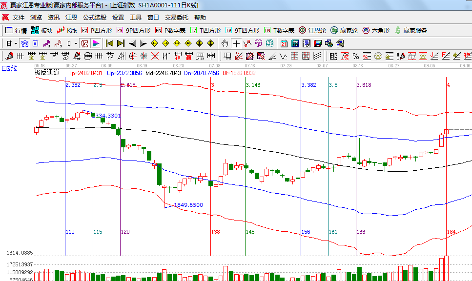 咨詢:13333833889指數(shù)回踩極反通道外軌線后延續(xù)震蕩攀升動作,成交量放大至近三年最大的量能,量在價先有成交量的配合更有信號表明行情的延續(xù),依據(jù)極反通道分析規(guī)則站穩(wěn)一線看線一線,強勢外軌線不破市場將震蕩攀升到至紅色外軌線;板塊方面交運設(shè)施、銀行、醫(yī)療等板塊漲幅居前,通信設(shè)備、航空航天表現(xiàn)較弱;