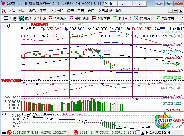 大盤周三低開沖高回落小跌0.27%,幾大指數(shù)全線下路,創(chuàng)業(yè)板跌幅最大,主要原因是權(quán)重繼續(xù)萎靡不振。板塊方面,環(huán)保、鋼鐵、電力板塊領(lǐng)跌;熱點題材方面,新疆本地股、次新和高送轉(zhuǎn)領(lǐng)漲,雄安概念領(lǐng)跌,個股漲跌互現(xiàn),成交量較前日略微放大。技術(shù)方面,短周期15、30分鐘失守生命線進入弱勢區(qū)域,日線保持前期觀點,在江恩百分比零度和90度為箱體下沿和上沿區(qū)間震蕩,熱點的不可持續(xù)性成為制約反彈主要因素,倉位保持在5成左右,3成為波段,2成為短線,3116、3100為日內(nèi)支撐,3154、3164為日內(nèi)阻力,僅供參考,不構(gòu)成任何投資建議。