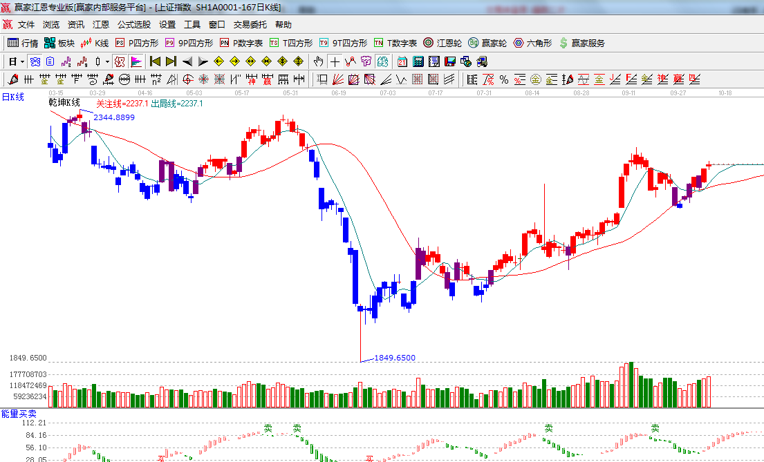 ★依據(jù)贏家江恩系統(tǒng)乾坤K線提示: K線顏色轉(zhuǎn)變?yōu)榧t色安全區(qū)域,多方占優(yōu)級(jí);
