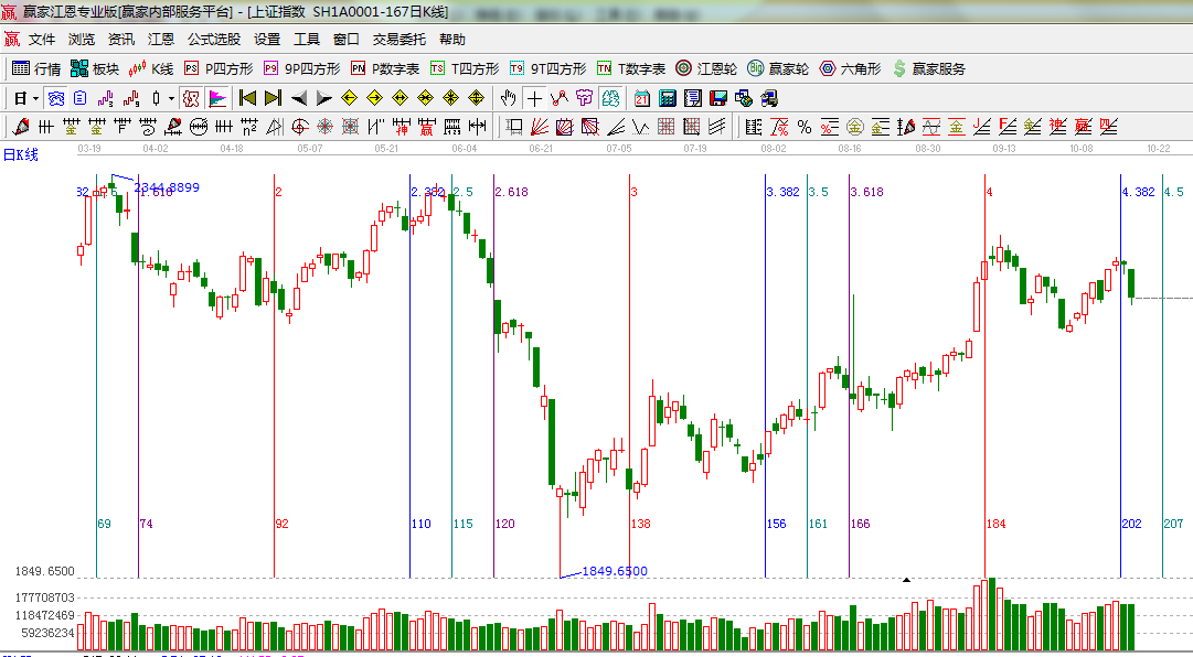 咨詢:13333833889指數(shù)進(jìn)入黃金分割時(shí)間窗0.382變盤日,空間方面極反通道外軌線是拋壓區(qū),江恩理論所談到的時(shí)價(jià)共振,市場(chǎng)方向選擇再一次確認(rèn)了判斷方法的有效性,未來(lái)一段時(shí)間市場(chǎng)將震蕩下探調(diào)整目標(biāo)為暫定為極反通道生命線位置,時(shí)間周期方面為0.5的位置22號(hào)附近,操作思路上前兩天的分析中已提高做好倉(cāng)位上的調(diào)控,等待市場(chǎng)確認(rèn)安全信號(hào)后操作;調(diào)整期間觀察板塊與個(gè)股狀態(tài)為后期操作做準(zhǔn)備;