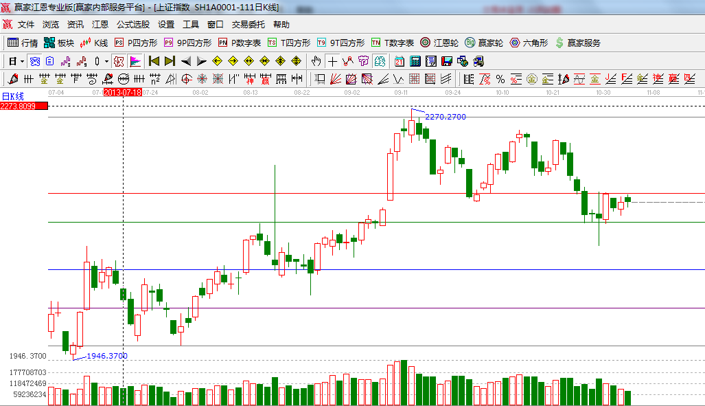 咨詢:13333833889指數(shù)今日成交量為663億延續(xù)縮量橫盤局勢,當(dāng)前圍繞2150點附近構(gòu)筑一個整理平臺,三中全會前各路資金觀望氣氛濃厚,多空雙方都沒有進(jìn)一步動作出現(xiàn),隨著時間窗的推進(jìn)指數(shù)時間窗即將開啟;盤面熱點油改勘探、節(jié)能環(huán)保、頁巖氣、交通工具等對維護(hù)市場人氣起了重大貢獻(xiàn),技術(shù)方面短周期還有上攻動能,短期能否放量突破站上極反通道生命線成為判斷行情的重要信號;