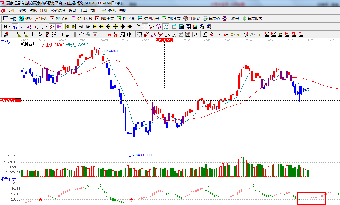 ☆依據(jù)贏家江恩系統(tǒng)能量買賣提示:多空轉(zhuǎn)換節(jié)點位置,有翻紅的跡象,等待信號的確認(rèn);