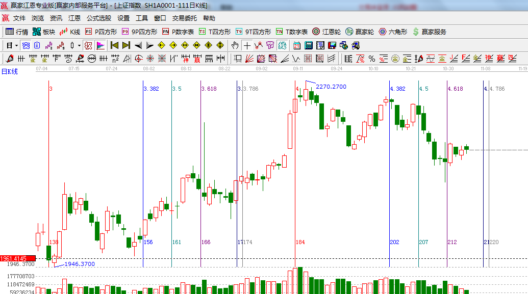 ★依據(jù)贏家江恩系統(tǒng)黃金時間周期線提示:7號、8號為日線時間窗,同時24節(jié)氣立冬是7號;