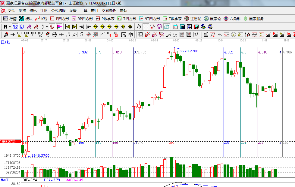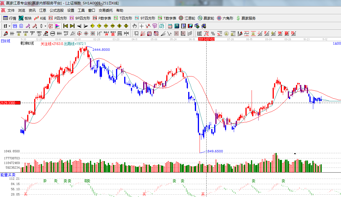 ★依據(jù)贏家江恩系統(tǒng)波段百分比延伸提示:江恩理論百分比45度位置是2125點,江恩百分比0度是2160;
