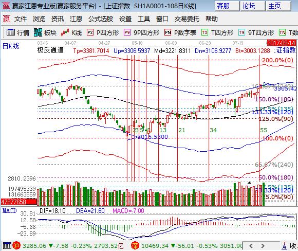 咨詢(xún):13333833889大盤(pán)周三低開(kāi)沖高震蕩回落收長(zhǎng)上影線(xiàn)小跌0.23%,創(chuàng)新高后幾大指數(shù)全線(xiàn)下跌,創(chuàng)業(yè)板領(lǐng)跌。板塊方面,鋼鐵、銀行、券商、有色煤炭是為數(shù)不多的紅盤(pán)板塊,石油、保險(xiǎn)領(lǐng)跌權(quán)重;題材方面,雄安和漲價(jià)資源局部活躍,軍工、云計(jì)算、人工智能和次新領(lǐng)跌,個(gè)股下跌居多成交量放大。技術(shù)方面,滬指突破4月高點(diǎn)最高沖至3005點(diǎn),午盤(pán)震蕩回落收盤(pán)在3300點(diǎn)下方,同時(shí)失守極反通道外軌線(xiàn)和江恩百分比240度,短周期15分鐘收盤(pán)在生命線(xiàn)位置,30、60分鐘離生命線(xiàn)還有回撤空間,日線(xiàn)圍繞外軌線(xiàn)震蕩不能強(qiáng)攻收漲,則階段震蕩回探的可能性將出現(xiàn),嚴(yán)探操作節(jié)奏,倉(cāng)位保持在4成,3265、3253為日內(nèi)支撐,3301、3308為日內(nèi)阻力,僅供參考,不構(gòu)成任何投資建議。