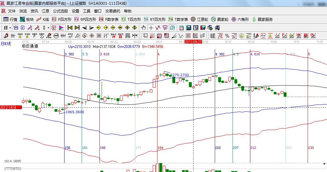 ★依據贏家江恩系統波段百分比延伸提示:黃金分割價格圖0.5位置是2090,0.382位置是2049;