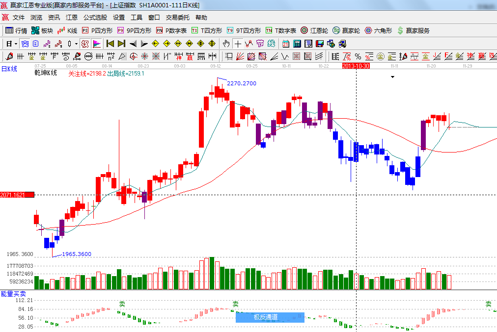 咨詢:13333833889滬深兩市沖高回落收出一根帶有長(zhǎng)上影線的倒垂線,權(quán)重股疲軟拖累大盤失守2200點(diǎn),成交量較前期有所回落,從均線系統(tǒng)分析多條均價(jià)線在下方支撐出現(xiàn)快速下跌的的概率較小,同時(shí)江恩軟件特色工具極反通道分析生命線在下方支撐,時(shí)間周期費(fèi)氏工具分析本周上半周短期修整將結(jié)束給出方向;盤面上以炒地圖、軍工、高送轉(zhuǎn)漲幅居前,煤炭、金融表現(xiàn)不佳;