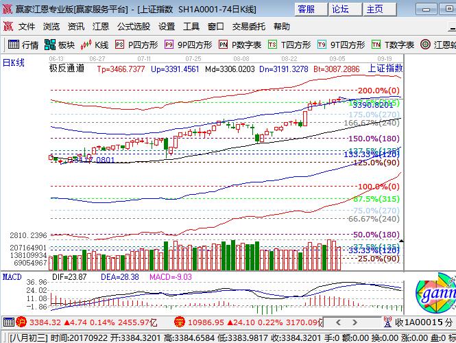 咨詢:13333833889大盤周二低開延續(xù)高位震蕩小漲0.14%,幾大指數(shù)全線紅盤,深市漲幅強(qiáng)于滬指。板塊方面,保險(xiǎn)、銀行板塊大漲,煤炭、鋼鐵、有色等資源股領(lǐng)跌;題材方面,中報(bào)高送轉(zhuǎn)、鋰電和次新等漲幅居前,稀土永磁、央企改革和區(qū)塊鏈等領(lǐng)跌,科技股分化加大,個股下跌家數(shù)略多于上漲家數(shù),成交量連續(xù)三天逐步萎縮。技術(shù)方面,滬指日線不斷刷新高,K線圍繞外軌線震蕩已有6個交易日,短期15、30分鐘回撤至生命線震蕩,60分鐘在外軌線相對高位,江恩百分比315度是3370點(diǎn)與外軌線交叉形成盤中支撐,上方0度位置是3417點(diǎn)為近段阻力,波段倉位控制在4成,短線倉2成,3370、3360為日內(nèi)支撐,3400、3410為日內(nèi)壓力。僅供參考,不構(gòu)成任何投資建議。