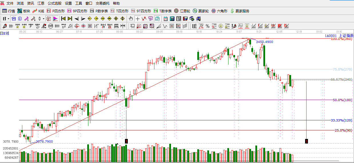 江恩看盤綜述:依據(jù)贏家江恩技術(shù)工具分析得出:周三,滬指探底回升,收復(fù)了30分極反通道生命線,60分生命線3306點依然是面臨的壓力位。當(dāng)前成交量仍是指數(shù)走勢的關(guān)鍵。如沒有增量資金入場,這里還是震蕩趨弱的走勢概率較大,上方阻力關(guān)注3306點,3342點附近,操作上,倉位控制在5成之下,切勿盲目追漲,重點以超跌股反彈的交易性機會為主。