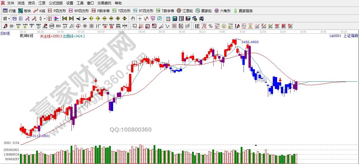☆依據(jù)贏家江恩理論系統(tǒng)乾坤K線提示:出現(xiàn)紫色警示k線,收盤(pán)價(jià)在關(guān)注線之上,依據(jù)規(guī)則,k先如能繼續(xù)向上突破紅色關(guān)注線,并出現(xiàn)紅色k線,將意味著整體趨勢(shì)轉(zhuǎn)強(qiáng)。