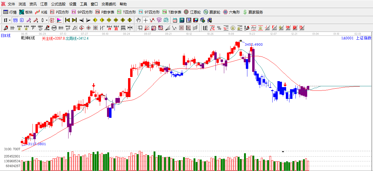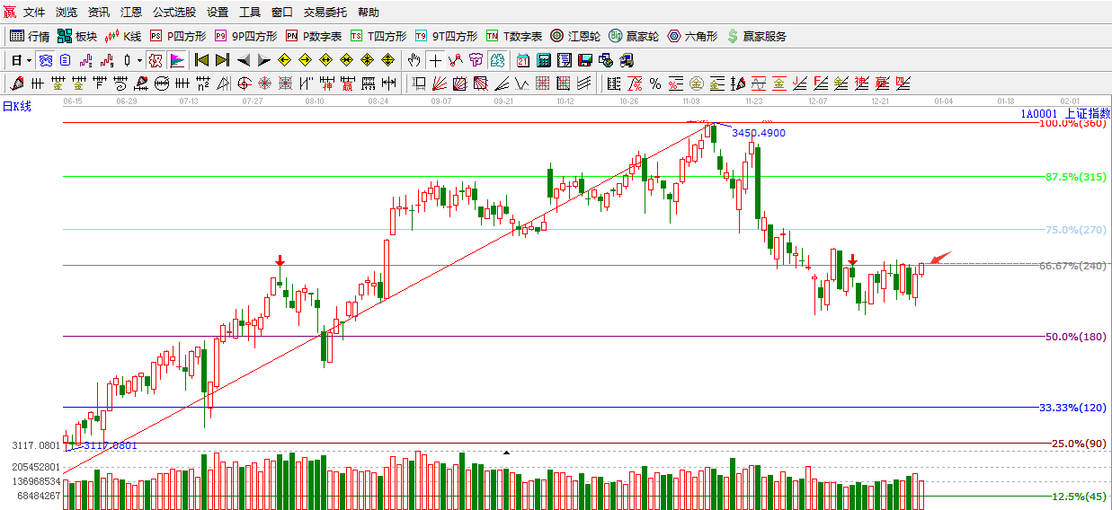 江恩看盤(pán)綜述:依據(jù)贏家江恩技術(shù)工具分析得出:周五,指數(shù)震蕩走高,尾盤(pán)收復(fù)3305點(diǎn)關(guān)鍵位置,是一個(gè)好的信號(hào),但美中不足的是量能同比萎縮,接下來(lái)繼續(xù)關(guān)注3305點(diǎn)突破的有效性。如新年第一個(gè)交易日,如能繼續(xù)保持在3305點(diǎn)之上,指數(shù)有望繼續(xù)看高日線(xiàn)生命線(xiàn)3342點(diǎn)附近。不然繼續(xù)保持謹(jǐn)慎,操作上,繼續(xù)控制倉(cāng)位的前提下,重點(diǎn)關(guān)注成長(zhǎng)性良好有業(yè)績(jī)支撐的小盤(pán)股。