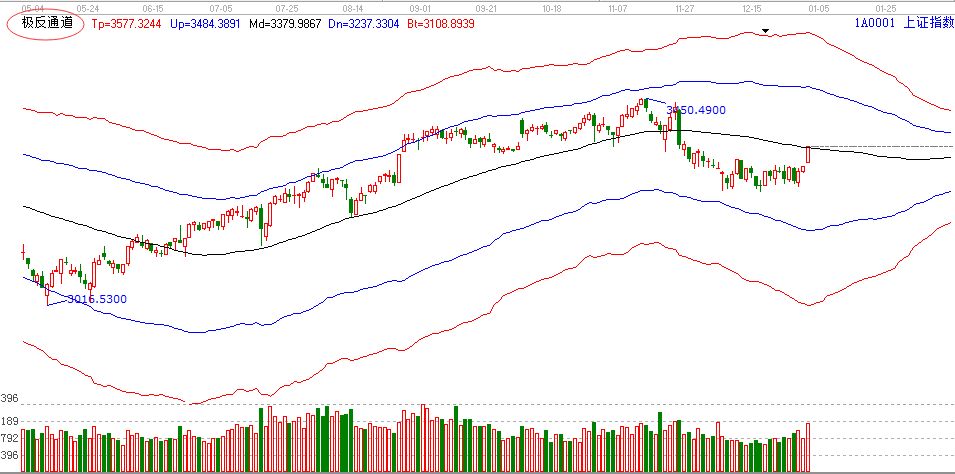 【贏家江恩點評:極反通道工具可幫助用戶解決大盤或個股趨勢判斷、價格買賣點,在日內(nèi)差價高拋低吸方面更能提示其優(yōu)勢?!?/strong>