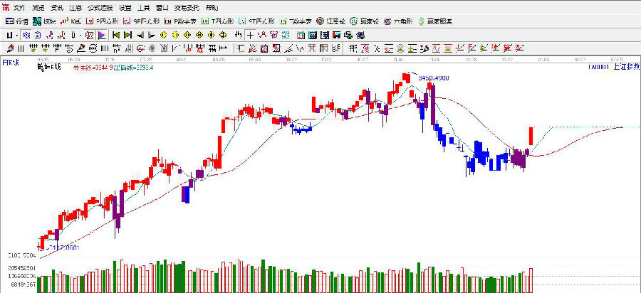 ☆依據(jù)贏家江恩理論系統(tǒng)極反通道提示:周二,滬指高開高走,直接拉升至日線生命線,接下來,關(guān)注生命線的爭(zhēng)奪,生命線價(jià)格是3345點(diǎn)。依據(jù)規(guī)則,日線生命線之上波段看多,之下短期弱勢(shì)震蕩為主。