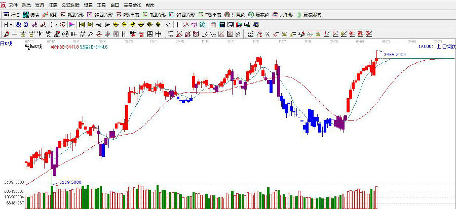 江恩看盤綜述:依據(jù)贏家江恩技術工具分析得出:周三,滬指再次強勢上攻,突破前期高點再創(chuàng)新高。并觸及極反通道日線藍色外軌線,依據(jù)規(guī)則,藍色外軌線短期會有一定的拋壓,短期需注意沖高回落以及震蕩的情況出現(xiàn)。藍色線阻力是3475點附近,支撐關注百分比270度3412點附近,下一時間窗口是1.22日附近。操作上,回避近期漲高的藍籌,關注調整過后的低位業(yè)績不錯的標的。