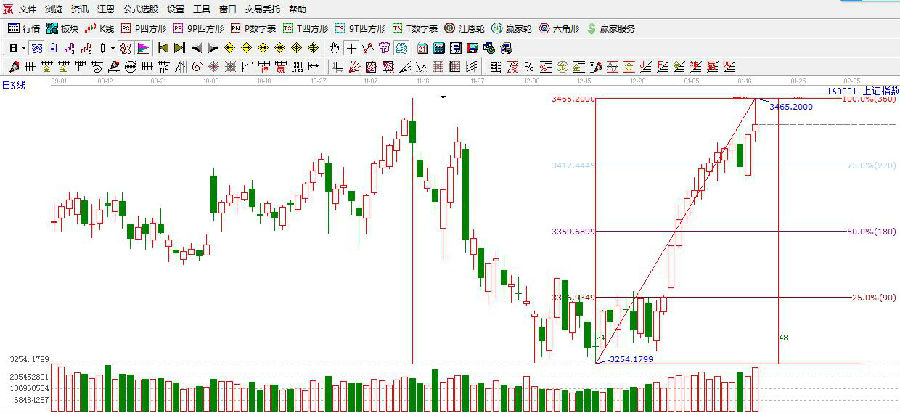 ★依據(jù)贏家江恩理論系統(tǒng)江恩波段百分比提示:滬指在創(chuàng)新高,阻力位依舊是3456點附近,支撐是百分比270度線3412點附近。
