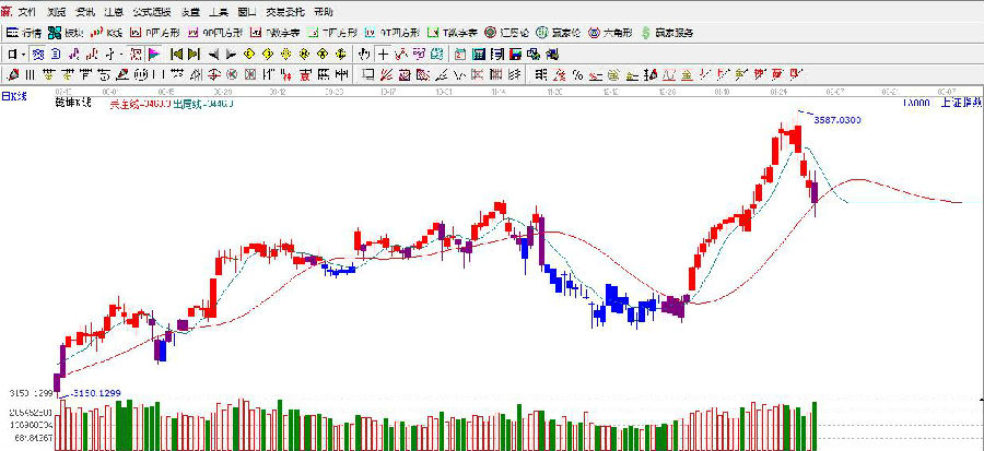 ★依據(jù)贏家江恩理論系統(tǒng)極反通道提示:早盤指數(shù)低開后,在權(quán)重股的帶動下,滬指上行反抽60分生命線后,再次展開跳水,午后,滬指在15、30分鐘周期藍色下軌線上止跌,展開弱勢整理,依據(jù)物極必反原則,短周期藍色下軌線附近或有超跌反彈。阻力位依然60分生命線3490點附近。
