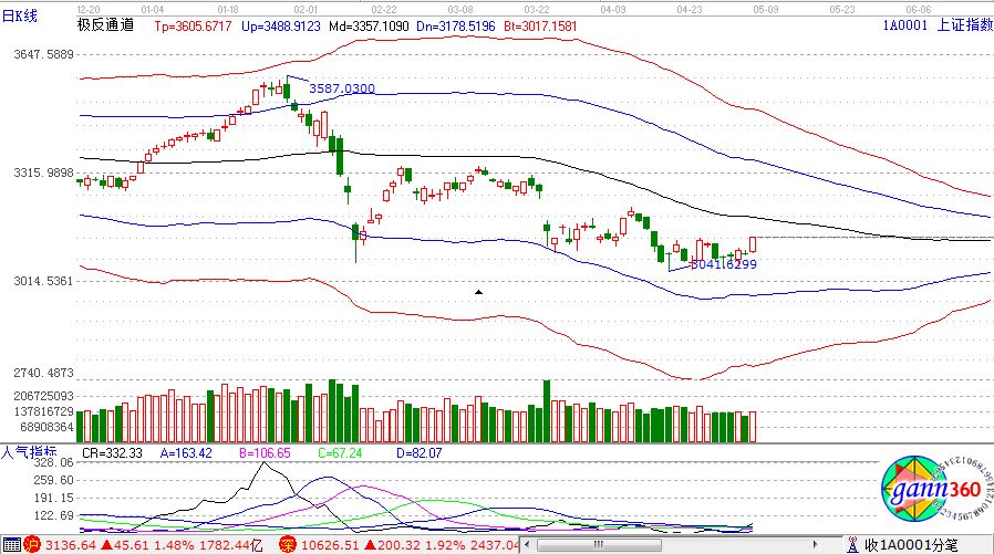 【贏家江恩點評:極反通道工具可幫助用戶解決大盤或個股趨勢判斷、價格買賣點,在日內(nèi)差價高拋低吸方面更能提示其優(yōu)勢?!?/p>