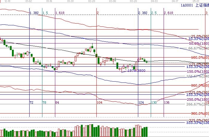 指數(shù)目前整體趨勢(shì)處于生命線之下,指數(shù)在江恩90度支撐附近止跌,小陰星報(bào)收,此位置不破,將有小幅反抽,后期能否放量突破生命線是反彈的關(guān)鍵。本周時(shí)間窗4月1日,倉(cāng)位控制3-5成左右,僅供參考,不構(gòu)成任何投資建議。
