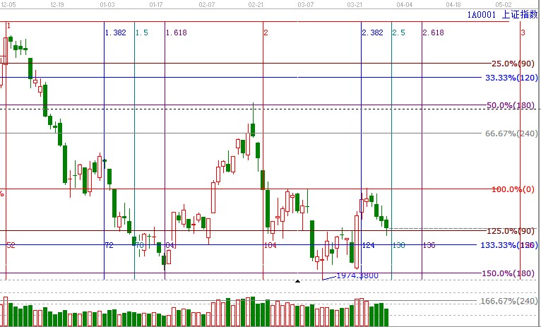 指數圍繞江恩90度位置弱勢整理,量能較前一交易日明顯萎縮,大盤連收4陰,預計短期市場仍將以弱勢整理為主,今日是日線級別的時間窗口,留意后期權重的表現,倉位控制3-5成左右,僅供參考,不構成任何投資建議。