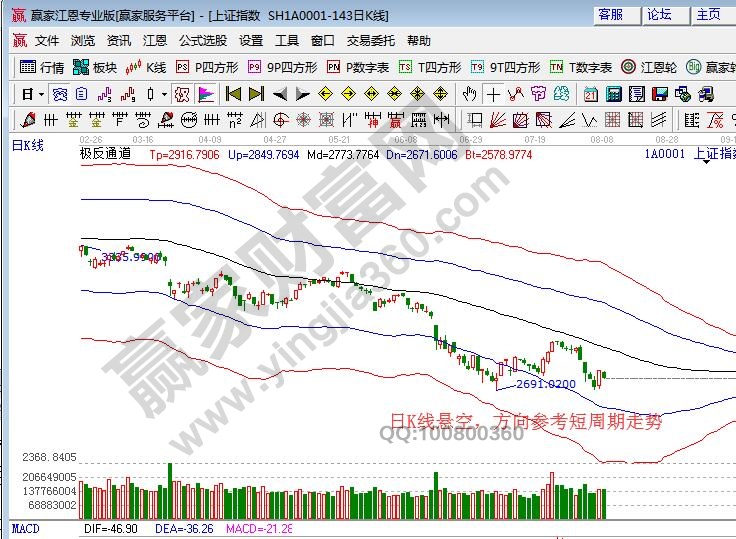 ☆依據(jù)贏家江恩理論系統(tǒng)極反通道提示:滬指短周期15分鐘未能延續(xù)上攻藍色上軌線,拐頭向下回踩確認黑色生命線,收盤正好落在此線上,明天早盤觀察此線得失,收復站穩(wěn)則向上看至藍色上軌線2790附近,反之按規(guī)則失守一線看低一線,弱勢藍色下軌線是2690位置,日線弱勢通道波段看空。