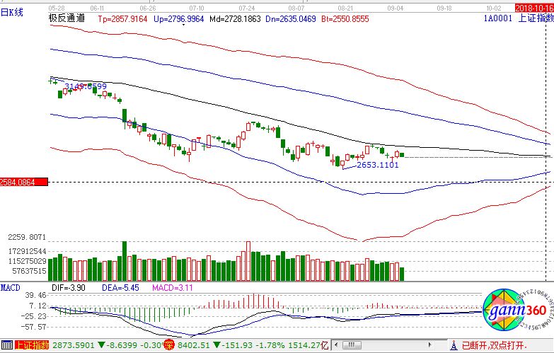 滬指跌1.68%,報收2704點;深成指跌1.78%,報收8402點;創(chuàng)業(yè)板跌1.74%,報收1430點。從盤面上看,半導體、高送轉(zhuǎn)、自由貿(mào)易港、集成電路、鋼鐵、造紙、水泥、白酒等板塊跌幅居前。滬股通凈流出23億,深股通凈流出6億。相應(yīng)的極反通道指標的支撐壓力提示,如下圖所示: